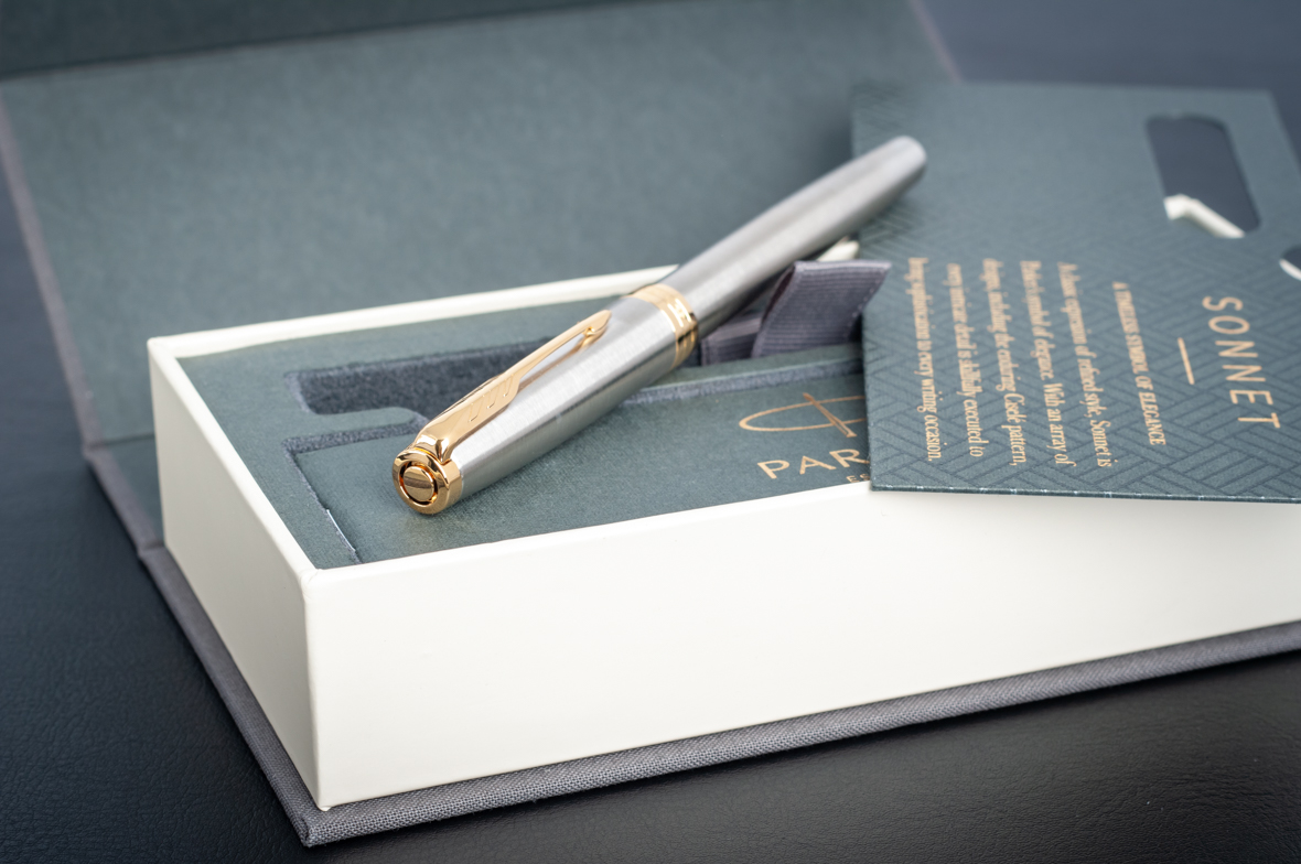 Перьевая ручка Parker Sonnet Stainless Steel GT от официального дилера Parker в Бердске. Вы можете дополнительно заказать гравировку, которая подчеркнет Вашу оригинальность и придаст памятность статусному подарку. Все ручки Паркер поставляются в фирменном футляре.